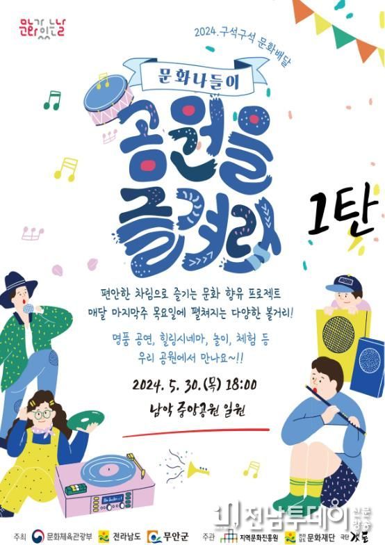 전남투데이 안철우 기자 | 전남 무안군은 오는 30일 18시에 남악중앙공원에서 문화나들이 ‘공원을 즐겨라’문화예술 행사를 개최한다.