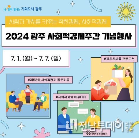 전남투데이 정홍균 기자 | 광주광역시는 7월 첫째주 ‘사회적경제주간’(1~6일)을 맞아 시민에게 사회적경제와 사회적경제기업에 대한 이해를 높여 착한 소비의 확산을 꾀하기 위한 다양한 행사를 연다.