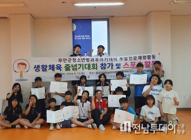 전남투데이 안철우 기자 | 전남 무안군 청소년방과후아카데미는 지난 6월 15일 소속 청소년 20명과 함께 ‘제8회 전라남도 협회장배 생활체육 줄넘기대회’에 참가했다.
