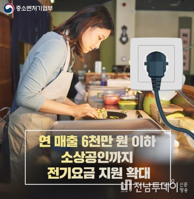 전남투데이 김완규 기자 | 전라남도는 최근 전기요금 인상에 따라 경영난을 겪는 영세 소상공인을 위한 중소벤처기업부의 ‘소상공인 전기요금 특별지원 사업’ 지원 대상과 신청 기간이 늘어남에 따라 해당 소상공인의 적기 신청을 당부했다.
