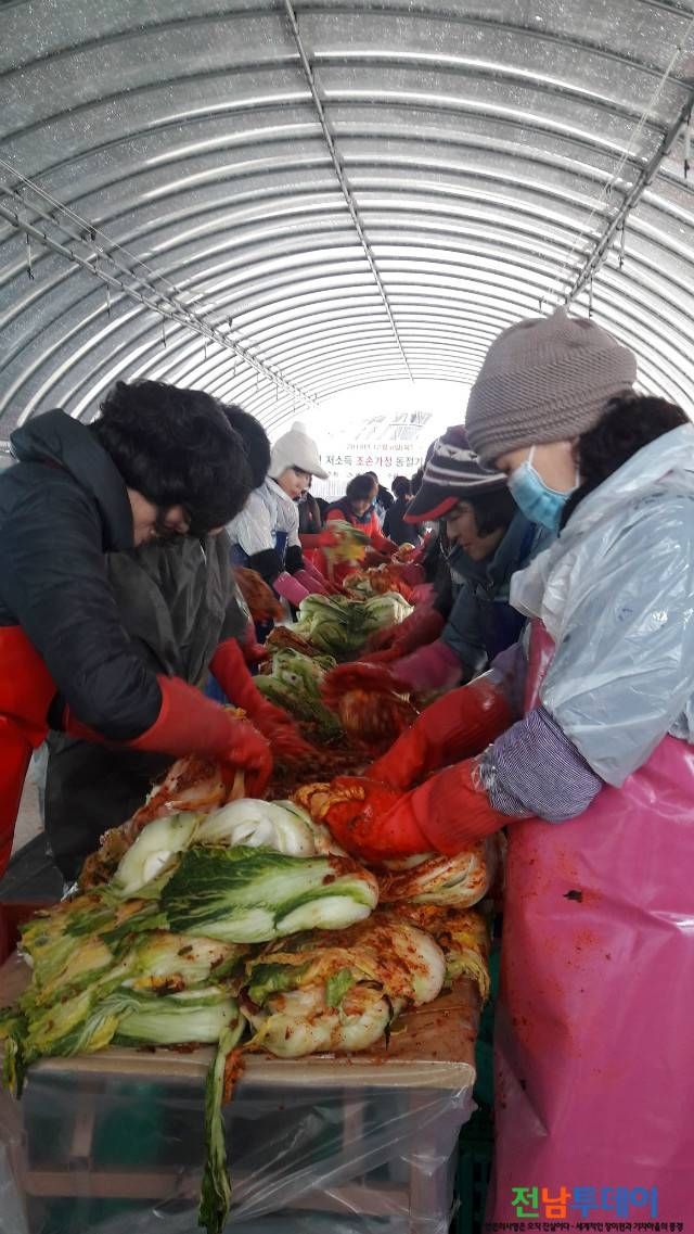 이번 행사에는 매서운 추위에도 불구하고 여성단체협의회(회장 김미순) 및 30여명의 회원들이 자발적으로 3일간 김치를 만들기 위해 절임배추 물빼기, 야채 다듬고 썰기, 김치소 버무리기, 포장에 이르기까지 김치담그기 전 과정에 참여하였다
