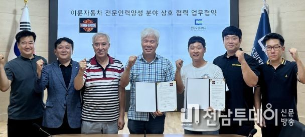 전남투데이 김완규 기자 | 전남도립대학교는 이륜자동차 부품 개발 및 정비기술 전문인력 양성을 위해 할리데이비슨코리아 광주점과 지난 20일 업무협약을 했다고 밝혔다.