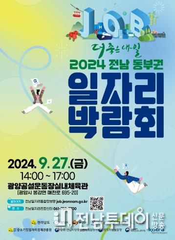 전남투데이 김완규 기자 | 전라남도는 오는 9월 27일 광양 공설운동장 실내체육관에서 ‘2024 전남 동부권 일자리박람회’를 개최키로 하고, 참여 기업을 9월 4일까지 모집한다고 밝혔다.