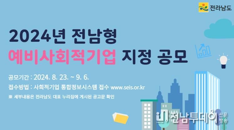 전남투데이 김완규 기자 | 전라남도는 2024년 전남형 예비사회적기업 지정을 희망하는 기업을 오는 9월 6일까지 공모한다고 밝혔다.