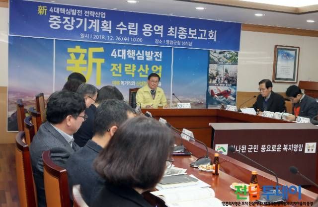 [전남투데이 김연자 기자] 영암군(군수 전동평)에서는 지난 26일, 新 4대핵심발전 전략산업 용역 최종보고회를 통해 신성장산업 비전과 추진전략을 포함한 중장기계획 수립에 들어갔다.