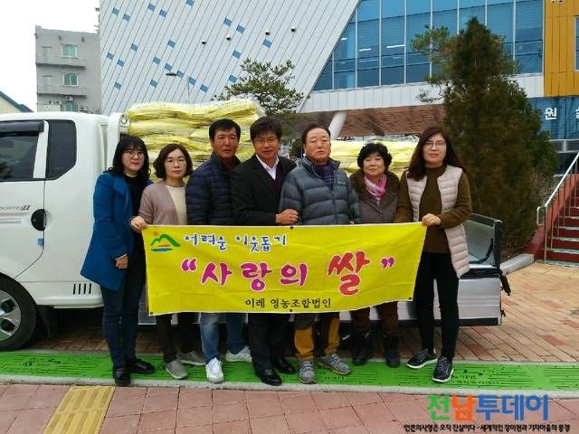 [전남투데이 김연자 기자] 영암군 삼호읍 소재 이레영농조합법인(대표 엄태철)에서는 지난 21일 법인에서 직접 경작하여 수확한 백미 20㎏ 100포(싯가 오백만원 상당)를 기탁하여복지사각지대 소외계층에게 이웃사랑 실천을 하고 있어 화제다.