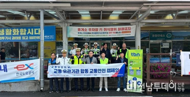 전남투데이 김완규 기자 | 전라남도경찰청 고속도로순찰대 제5지구대는 10월7일 호남고속도로 백양사휴게소에서 고속도로 대형버스 교통사고 예방을 위한 유관기관 합동 캠페인을 가졌다.