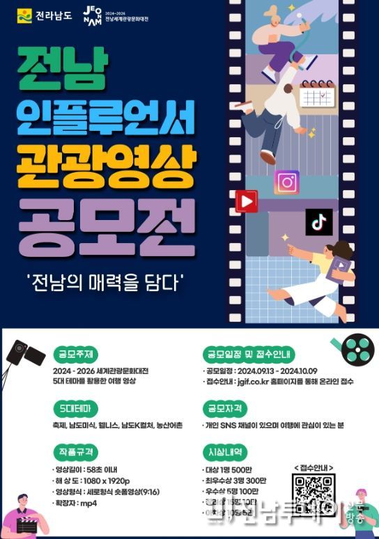 전남투데이 김완규 기자 | 전라남도는 아름다운 자연과 독특한 문화 등 우수한 관광자원을 국내외에 널리 알리기 위해 ‘전남 글로벌 인플루언서 영상 공모전’을 진행, 오는 18일까지 국민의 작품 조회수를 평가에 반영해 우수작을 선정한다고 밝혔다.