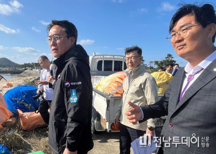 전남투데이 김완규 기자 | 전라남도는 23일 신안 압해도 현장 방문에 나선 강도형 해양수산부장관에게 신속한 해양쓰레기 수거처리를 위한 국비 지원율 상향과 인프라 확충, 해양환경정화선 신규 건조 지원 등을 건의했다.