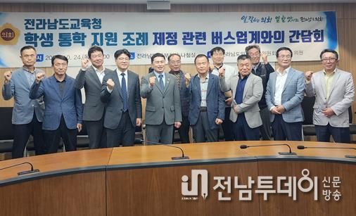 전남투데이 김완규 기자 | 전남도의회 임형석 의원(더불어민주당ㆍ광양1)은 지난 10월 24일, 전라남도 동부청사 나철실에서 전라남도교육청 학생 통학 지원 조례 제정 관련 버스업계와의 간담회를 개최했다.