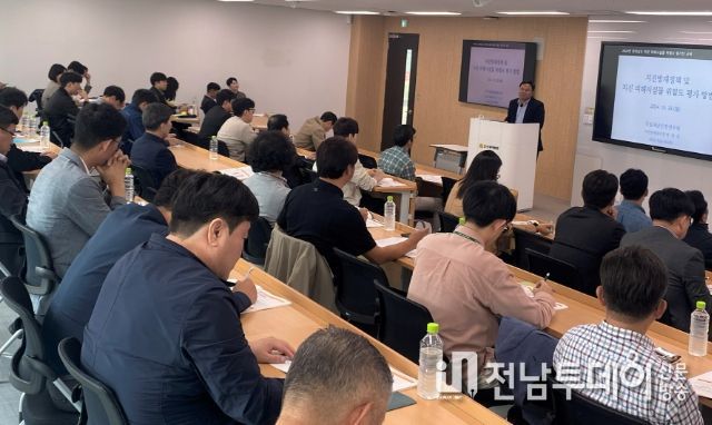전남투데이 김완규 기자 | 전라남도는 28일 전남도 인재개발원에서 시군 지진 담당 공무원, 민간전문가 등 지진 피해시설물 위험도 평가단 80여 명을 대상으로 지진 대응 역량강화 교육을 했다.