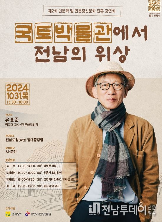 전남도는 31일 오후 2시 도청 김대중 강당에서 ‘국토박물관에서 전남의 위상’을 주제로 유홍준 명지대 교수를 초빙, 인문학 강연회를 개최한다.
