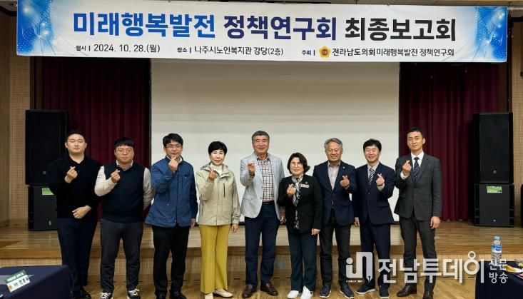 전남투데이 김완규 기자 | 전라남도의회 ‘미래행복발전 정책연구회는 지난 10월 28일 나주시 일원에서 '노인복지 및 청년과 지역공동체 상생'을 주제로 정책연구용역 최종보고회를 개최했다.
