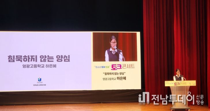 김대중 100년 평화페스티벌 첫날 행사로 마련된 청소년 평화·인권 토크 콘서트는 ▲ 제1부 평화·인권 역사의 외침 ▲ 제2부 전남 의(義) 교육활동 공유 및 나눔으로 진행됐다.