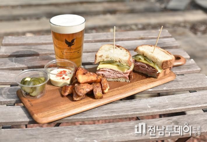 순천에서 자란 보리로 만든 수제 맥주와 순천에서 직접 재배한 매실로 만든 탄산음료 매실사이다를 수제 햄버거와 함께 맛볼 수 있다.