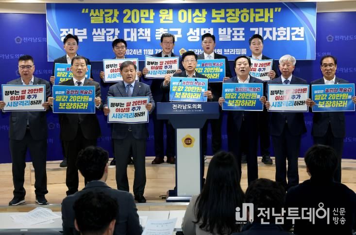이에 전라남도의회는 11월 7일, 정부의 수확기 쌀값 대책들이 쌀값 상승에 전혀 영향을 주지 못한 맹탕·재탕·물타기 대책에 불과하다고 강력히 비판하면서, 실효적인 대책 마련을 촉구하는 성명서를 발표했다.