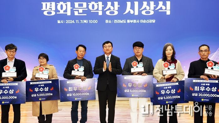전남투데이 김완규 기자 | 전라남도는 여순의 아픔을 넘어 평화와 희망을 상징하는 최고의 문학상 도약을 목표로 여수·순천 10·19평화문학상을 제정, 7일 동부청사에서 열린 첫 시상식에서 소설 부문 이경호 씨 등 6명의 수상자를 배출했다.