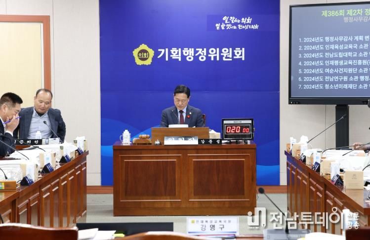한편, 전라남도의회 기획행정위원회는 지난 1일부터 오는 11일까지 총 4일간 전라남도 기획조정실을 비롯한 19개 소관 부서(출연기관 등 포함)의 행정업무 전반에 대한 행정사무감사를 실시하고 있다.