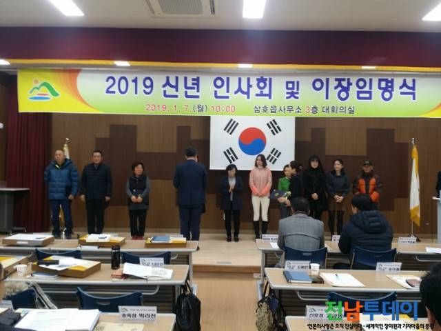 이날 인사회에는 삼호읍 마을이장 67명과 도의원 이보라미, 영암군의회 강찬원, 고천수 의원, 노인회장 백동출외 20명의 기관·사회단체장이 참석한 가운데 새해인사, 내빈소개, 국기에 대한 경례, 신년사 대독, 기관사회단체장님 덕담, 삼호읍 지원소개, 이장 임명장수여, 이장단 회의 순서로 진행 되었으며,
