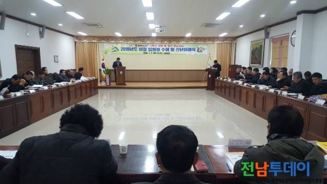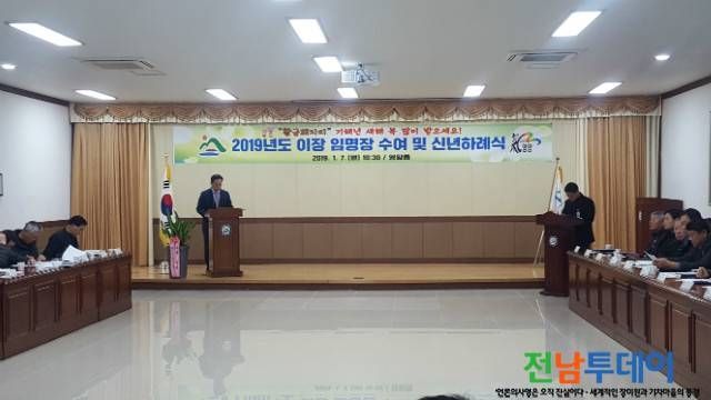 영암읍(읍장 임용기)은 기해년 새해를 맞이하여 지난 7일 영암읍사무소 2층 회의실에서 우승희 도의원, 영암군의회 유나종 부의장, 박영배, 박찬종, 노영미 의원, 박도상 농협장 등 영암읍 기관사회단체장 70여명이 참석한 가운데 2019년 이장 임명장 수여 및 신년하례식을 개최하였다.