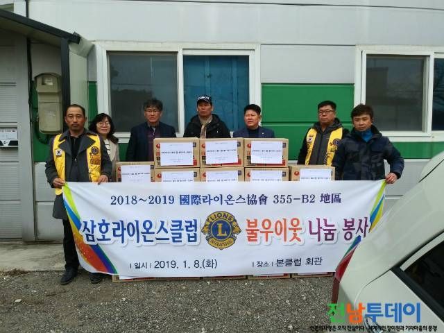 삼호 라이온스클럽은 매년 관내 7개 초·중학교에 장학금 지급과 불우이웃돕기, 독거노인 집수리와 식량 의료품 전달 등 어려운 소외계층을 위한 봉사활동을 꾸준히 펼쳐왔으며, 이번 나눔 행사에서는 회원들이 직접 삼호 자연마을 44개 경로당에 직접 사랑의 라면을 배달하였다.