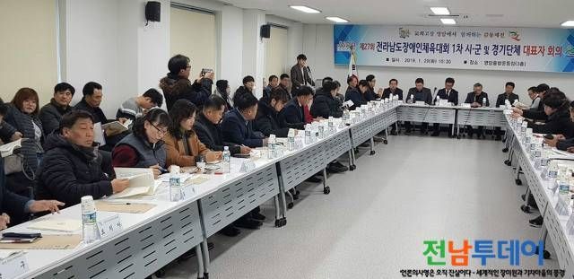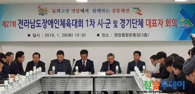 (전남투데이 김연자 기자) 영암군(군수 전동평)에서는 지난 1월 29일 영암종합운동장 회의실에서 제27회 전라남도장애인체육대회의 성공개최를 위해 종목별 경기단체 임원 및 시·군 체육대표자 등 관계자 100여명이 참석한 가운데 1차 시·군 및 경기단체 대표자 회의를 개최했다.
