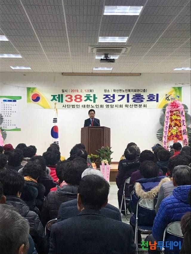 (전남투데이 김연자 기자) 학산면 노인회(노인회장 조광호) 정기총회를 2019.2.12.(화) 10:30분 학산면 커뮤니티센터 회의실에서 내외빈 및 노인회원 등 170여명이 참석한 가운데 성대하게 개최하였다.