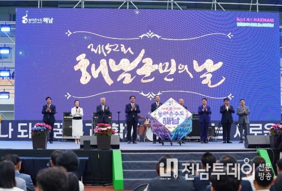 ‘하나되어 꿈꾸고 함께 만들어 가는 새로운 해남’을 주제로 열린 군민의 날 기념식은 군민과 향우들이 화합하여 군정 발전의 의지를 다지는 기념행사와 함께 군정발전 유공자에 대한 시상식 등이 진행됐다. 올해 군민의 상에는 류경록 향우가 선정됐으며, 지역사회발전을 위해 노력한 군정발전 유공자 47명에 대한 시상도 이어졌다.