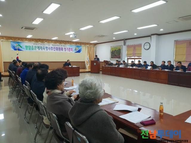 (전남투데이 김연자 기자) 영암군, 영암읍문예․체육행사추진위원회(위원장 양승만)는 지난 20일 추진위원장과 위원, 영암읍장 등 50여명이 참석한 가운데 2019년도 정기총회를 개최했다.
