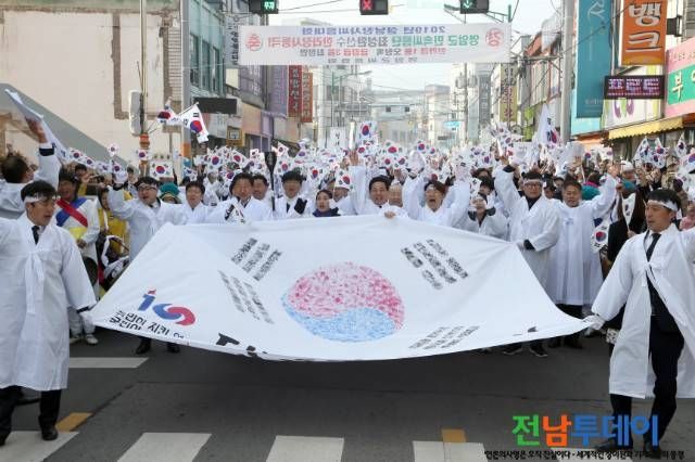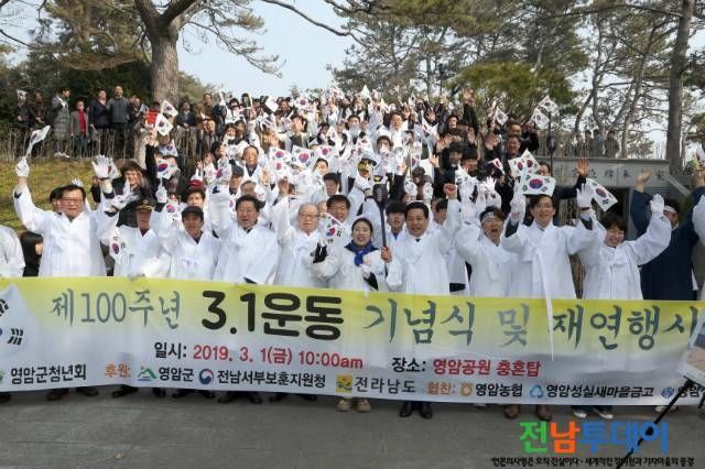 (전남투데이 김연자 기자) 영암군(전동평 군수)은 지난 3월 1일 오전 10시 영암공원과 영암읍 시가지에서 주요기관. 사회단체장과 보훈가족, 공무원, 학생, 군민 등 1000여명이 참석한 가운데 민족자존과 국권회복을 위해 분연히 일어섰던 선열들의 위업을 기리고자 3.1운동 제100주년 기념식과 만세운동 등 다양한 재현행사를 가졌다.
