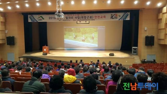 이날 안전교육은 삼호읍 산업경제팀장이 강사로 안전보건공단의 시청각 자료를 활용, 작업현장에서 발생할 수 있는 사례를 중심으로 강의를 하였다.