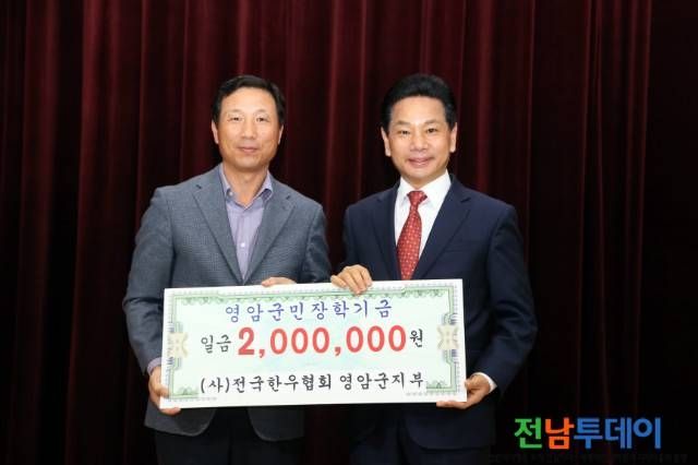 (전남투데이 김연자 기자) (사)전국한우협회영암군지부(지부장 김태성)는 지난 4일, 영암군 장학회에 장학금 200만원을 기탁했다.