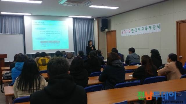 (전남투데이 김연자 기자) 영암군 건강가정·다문화가족지원센터(센터장 송영희)는 지난 5일 80여명이 참여한 가운데 2019년 다문화가정을 위한 한국어교육 주간반과 야간반의 개강식을 가졌다.