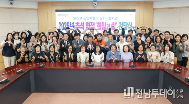 전남투데이 조평훈 기자 | 포스코 광양제철소가 2025년 추석 명절을 맞아 9월 25일 광양시청 창의실에서 '희망의 쌀' 전달식을 가졌다.