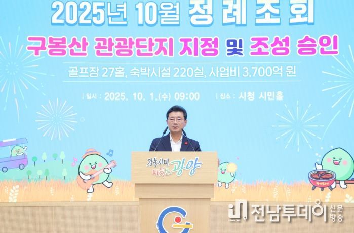 특히 구봉산 관광단지 조성 승인과 관련해 “207만㎡ 부지에 3천700억 원 규모의 민간 자본이 투입돼 2030년 준공을 목표로 도심 속 체류형 관광단지가 조성된다”며 “중앙부처·산림청·전라남도청 등 관계기관을 설득하기 위해 노력한 직원들의 노고가 컸다”고 격려했다.