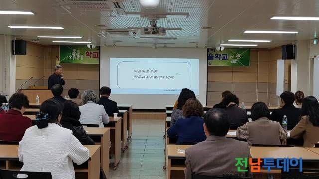 고흥온마을학교 이수일 대표와 ‘꿈꾸는 놀이터’김경희 마을교사를 초청하여 마을교육공동체 가치와 철학, 질문과 답변이 있는 마을학교 사례발표를 하고, 이어 마을학교 운영자 소개와 프로그램 공유, 발전방향에 대해 의견을 나누는 시간을 가졌다.