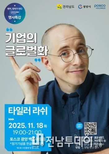전남투데이 조평훈 기자 | 광양시는 11월 18일 오후 7시 백운아트홀에서 열리는 ‘2025년 제3회 광양 스타트업 콘서트’에 방송인 타일러 라쉬를 초청해 글로벌 특강을 진행한다고 밝혔다.