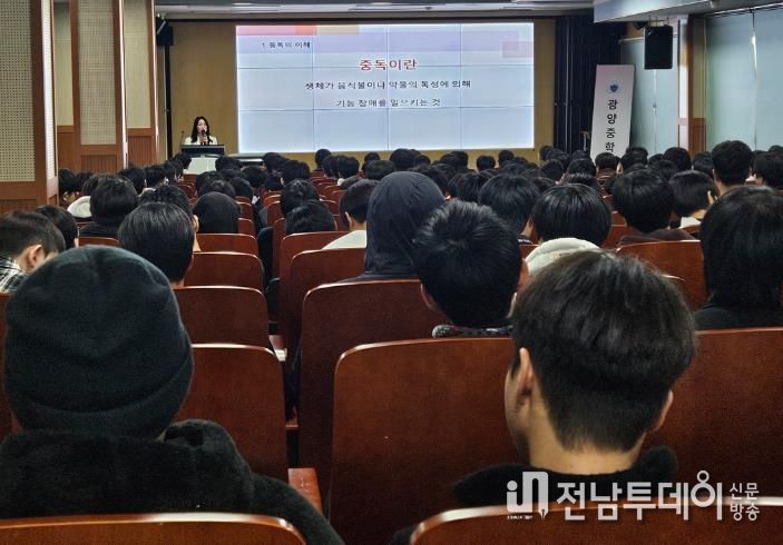 전남투데이 조평훈 기자 | 광양시보건소는 지난 11월 10일 광양중학교에서 3학년 학생 155명을 대상으로 ‘청소년 도박 중독 예방 교육’을 실시했다고 밝혔다.
