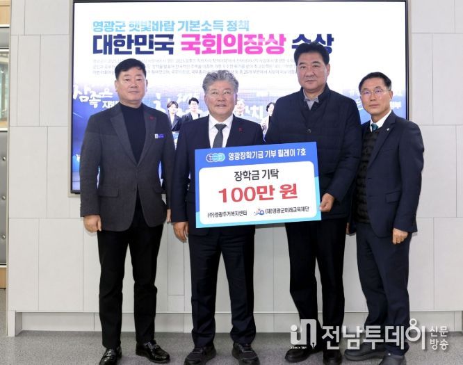 이어 ㈜영광주거복지센터(대표 김근수)는 영광장학기금 기부 릴레이 7호로 장학금 100만 원을 기탁했다.