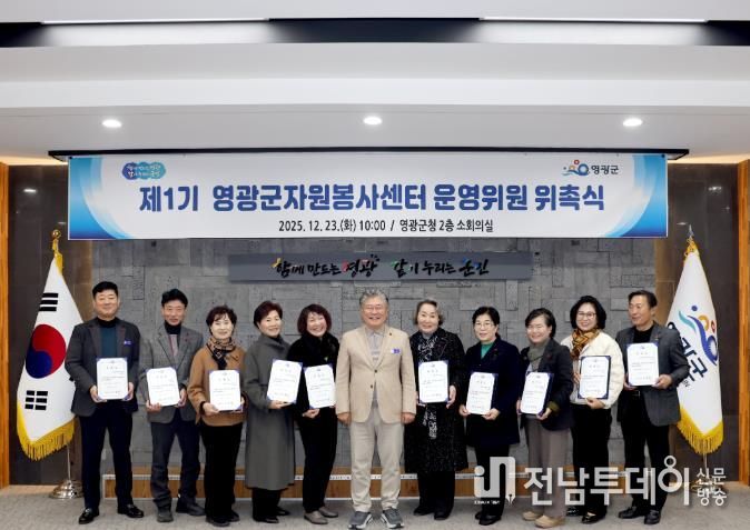 전남투데이 박세훈 기자 | 영광군은 12월 23일 영광군청 2층 소회의실에서 26년부터 운영될 제1기 영광군자원봉사센터 운영위원회 위원 위촉식을 가졌다고 밝혔다.