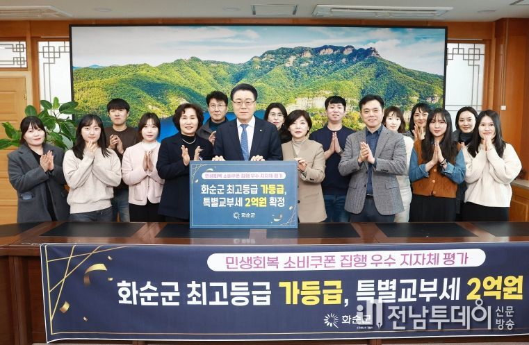 전남투데이 강영선 기자 | 화순군은 24일 행정안전부가 주관한 ‘민생회복 소비쿠폰 집행 우수 지자체 평가’에서 최우수 지자체로 선정돼 특별교부세 2억 원을 확보했다고 밝혔다.