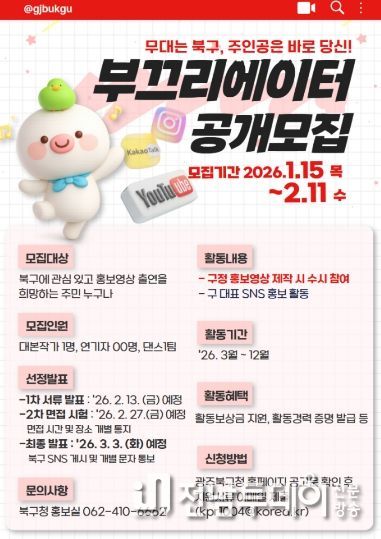 문인 북구청장은 “부끄리에이터는 주민이 홍보의 주체로 참여하는 소통 행정의 상징”이라며 “주민의 일상과 공감이 담긴 콘텐츠를 통해 구정이 더 가깝게 전달되길 기대한다”고 말했다.