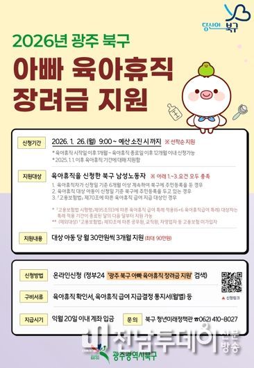 25일 북구에 따르면 오는 26일부터 ‘2026년 아빠 육아휴직 장려금’ 신청이 시작된다.