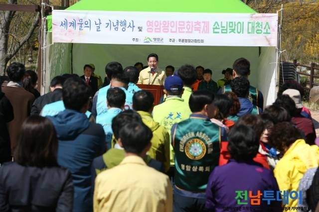 이날 행사는 영암군 관내 유관기관 임직원과 사회단체 회원, 공무원 등 500여명이 참여한 가운데 기념식을 갖고 물 자원의 소중함과 보존 책임에 대한 군민 공감대를 마련하는 한편 ‘영암왕인문화축제’가 열리는 왕인박사유적지와 구림마을 일대에 쌓인 쓰레기를 대대적으로 수거하고 상대포 역사공원, 구림천의 하천 정화활동도 전개하였다.