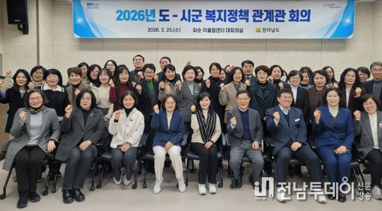 전남투데이 김용희 기자 | 전라남도는 25일 화순 어울림센터에서 도와 시군 간 복지사업의 효율적 추진 및 소통 강화를 위한 ‘2026년 도-시군 복지정책 관계관 회의’를 열어, 모든 도민이 행복한 복지 전남 실현을 다짐했다.