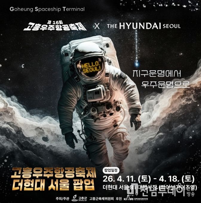 전남투데이 조평훈 기자 | 고흥군은 오는 4월 11일부터 18일까지 서울 여의도에 위치한 더현대 서울에서 ‘고흥우주항공축제 팝업스토어’를 개최한다고 밝혔다.