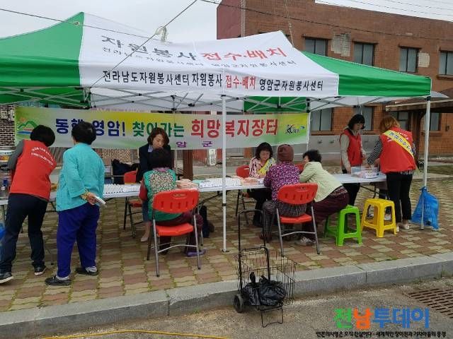 군은 지난 4월 23일 신북면 전통시장에서「동행영암! 찾아가는 희망복지장터」를 영암읍 전통시장에 이어 2회째 운영하면서 맞춤형 상담을 통해 복지제도에 대한 궁금증 해소와 함께 복지사각지대 발굴활동을 펼치고 있다.