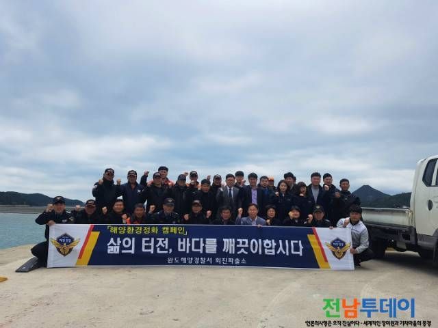 [전남투데이 김오례기자]완도해양경찰서 소속 회진파출소는 지난 26일 깨끗한 바다를 만들기 위해서 장흥 회진항 해안가와 대구도 인근 해상에서 민관 합동으로 해상 정화활동 등 안전 캠페인을 실시하였다.