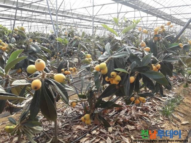 하우스에서 재배하고 있는 비파는 5월 하순까지, 노지에서 자란 비파는 7월 상순까지 수확하며, 비파 가격은 1kg에 12,000~15,000원(4월 29일 기준)이다.