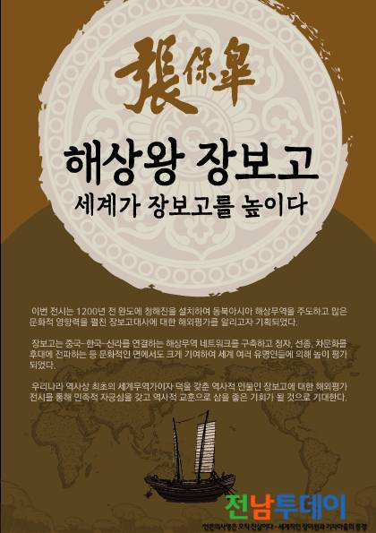 이번 전시는 1,200년 전 완도에 청해진을 설치하고 동북아시아 해상 무역을 주도하고 많은 문화적 영향력을 떨친 장보고 대사에 대한 해외 평가를 알리고자 기획됐다.